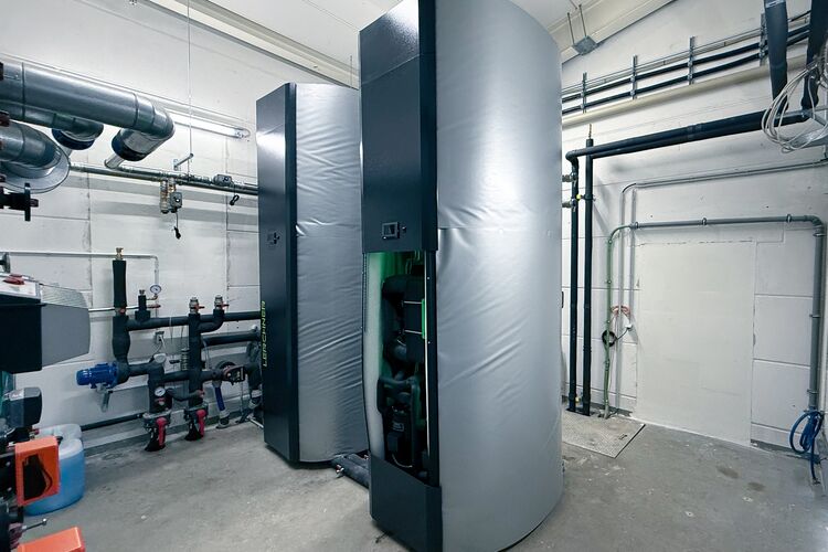 Weiterhin sorgt eine zusätzliche Wärmepumpe, die über ein kaltes Nahwärmenetz an das bestehende Erdsondenfeld angeschlossen wird, für die nachhaltige Beheizung und den Warmwasserbedarf.