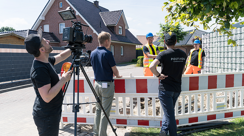 Gedreht wurde u.a. an realen Baustellen aus dem Glasfaserausbau in Niedersachsen. Dazu reisten wir nach Oldenburg, dem Firmensitz unseres Kunden und NET Build-User Glasfaser Nordwest. Gemeinsam mit Postyou entstanden vor Ort die Szenen für den Produktfilm.